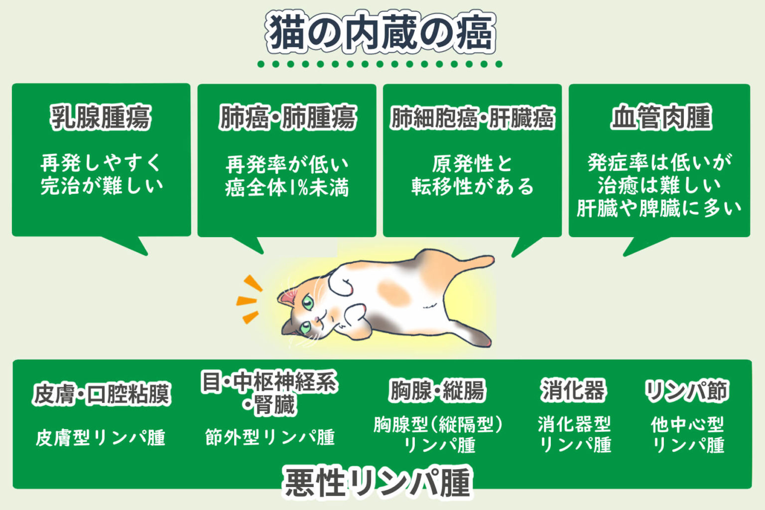 - リンパ腫:血液の癌。猫では特に発生頻度が高い。