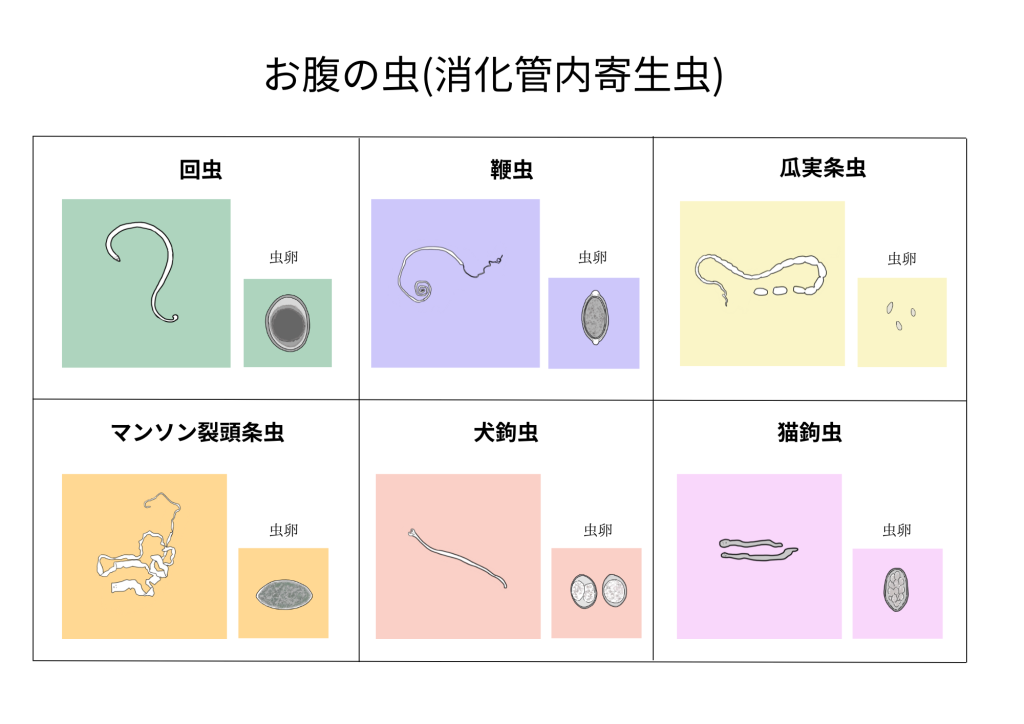 多くの寄生虫は専用の駆虫薬で駆除できます。回虫・鉤虫・条虫などは薬で改善されるケースが多いです。