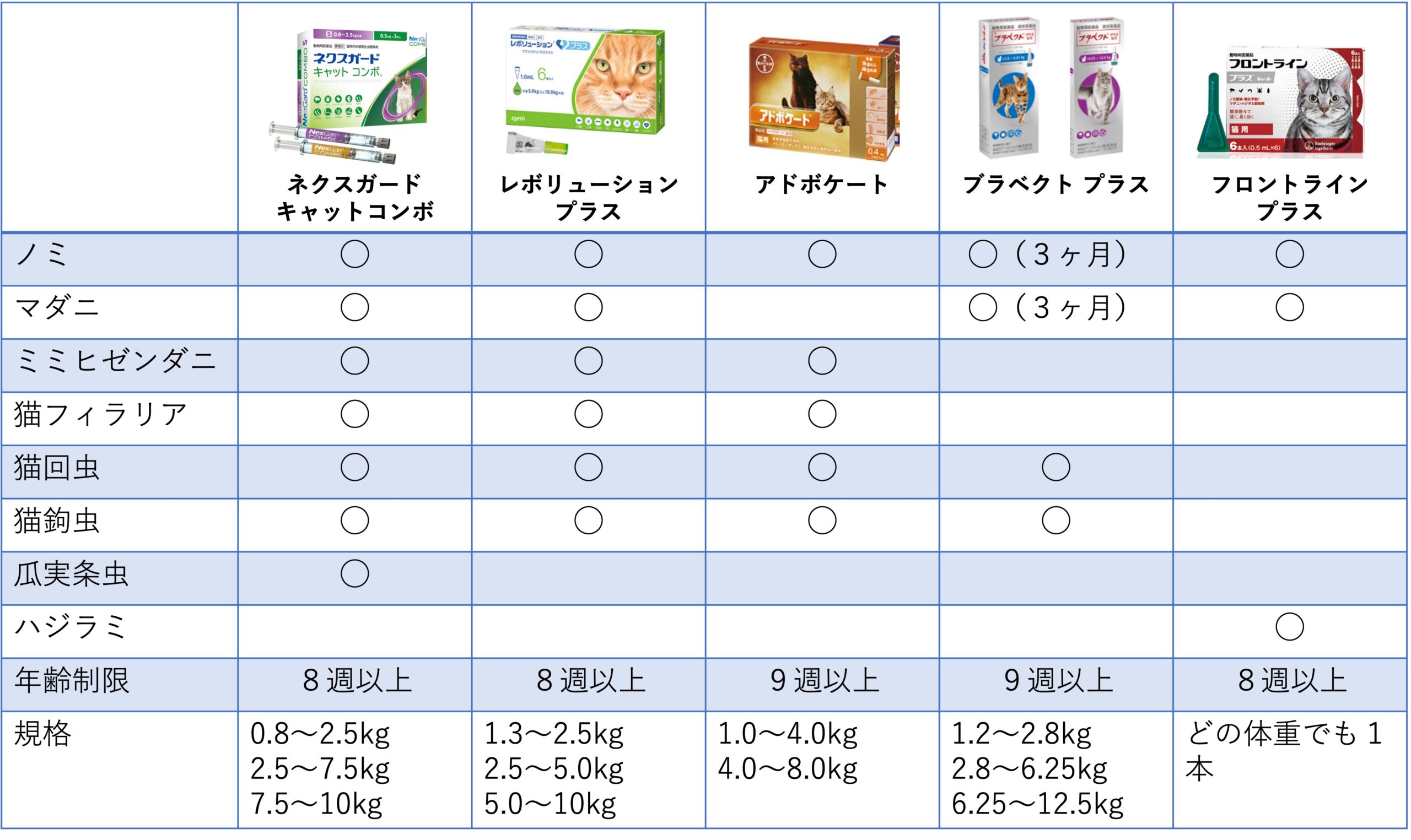 市販薬では適切な種類に対応できない場合があります。必ず動物病院で処方されたものを使ってください。