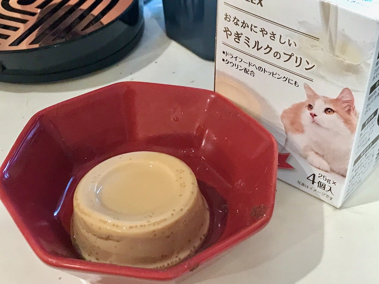 もちろん、写真内で猫がプリンを食べているわけではなく、あくまで“可愛い構図としての演出”ですので、真似して与えないように注意してください。