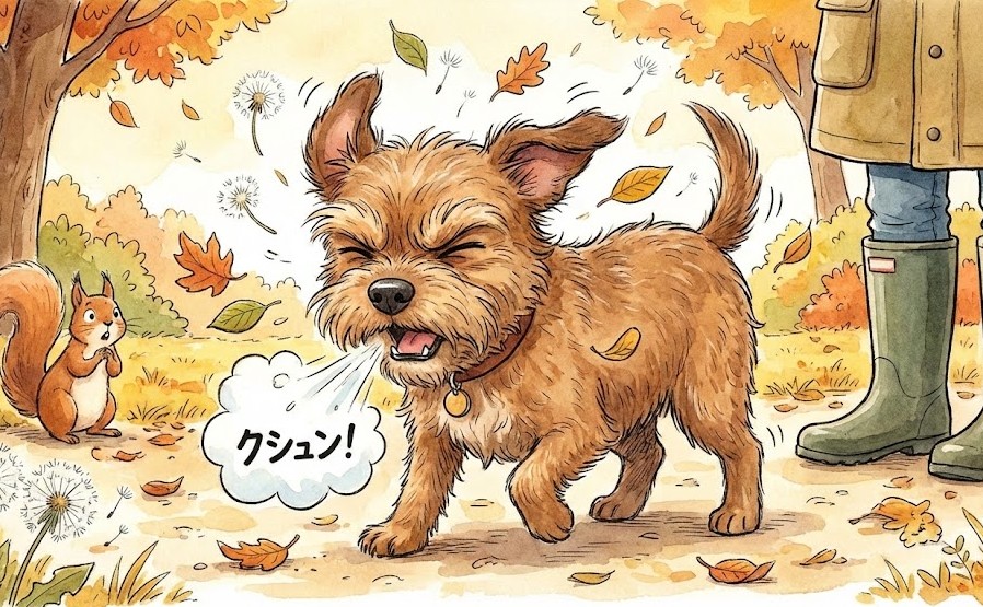 「さっきまで元気に散歩していたのに、草むらに顔を入れた直後から、急に激しいくしゃみが止まらなくなった」