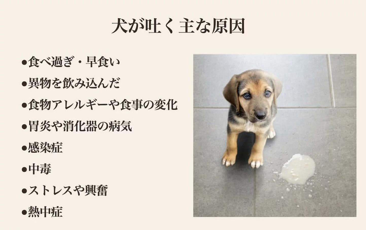 犬が突然吐くと、「大丈夫なの?」「すぐ病院?」と不安になりますよね。