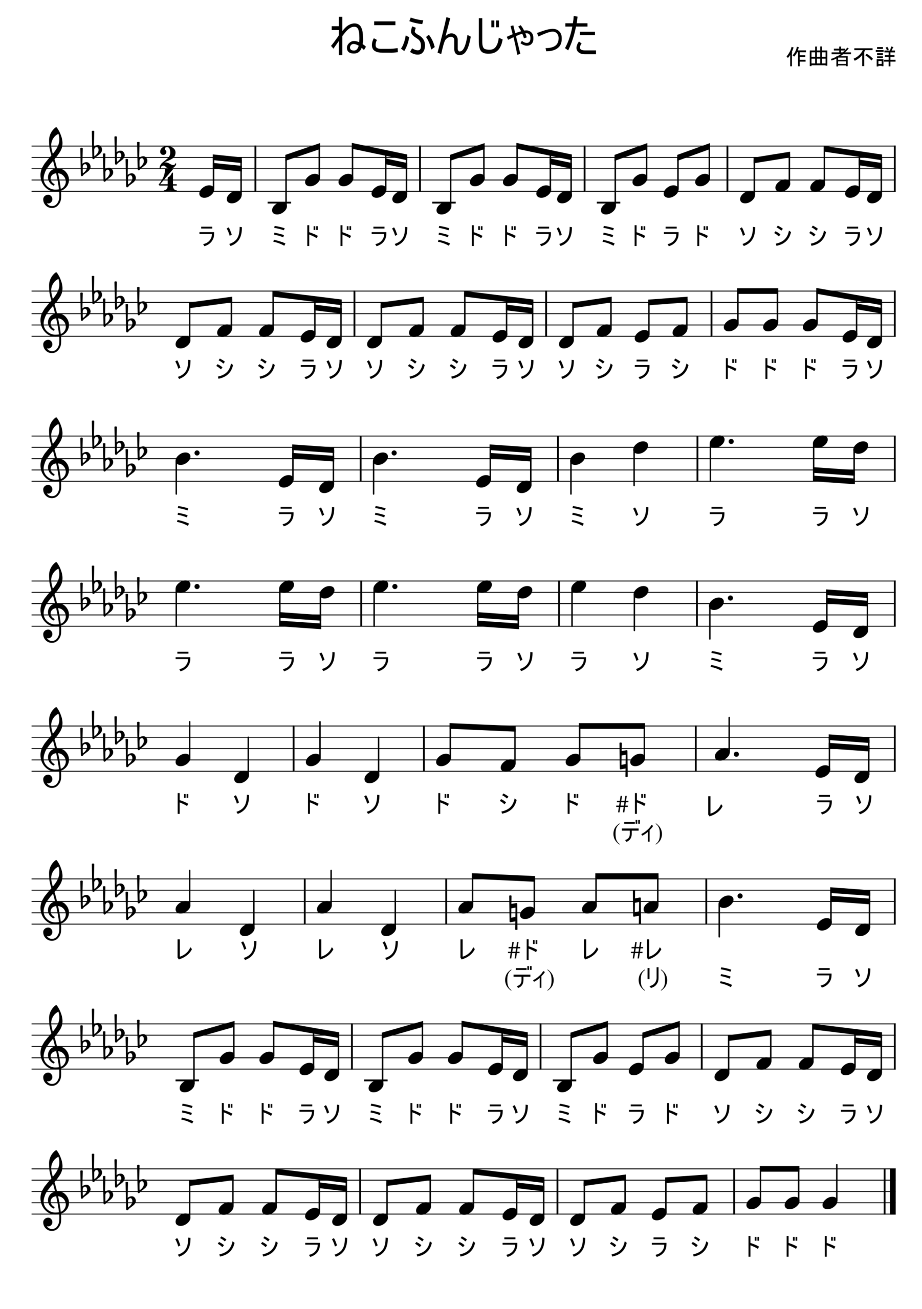 片手で弾ける猫踏んじゃった(ドレミ表記)
